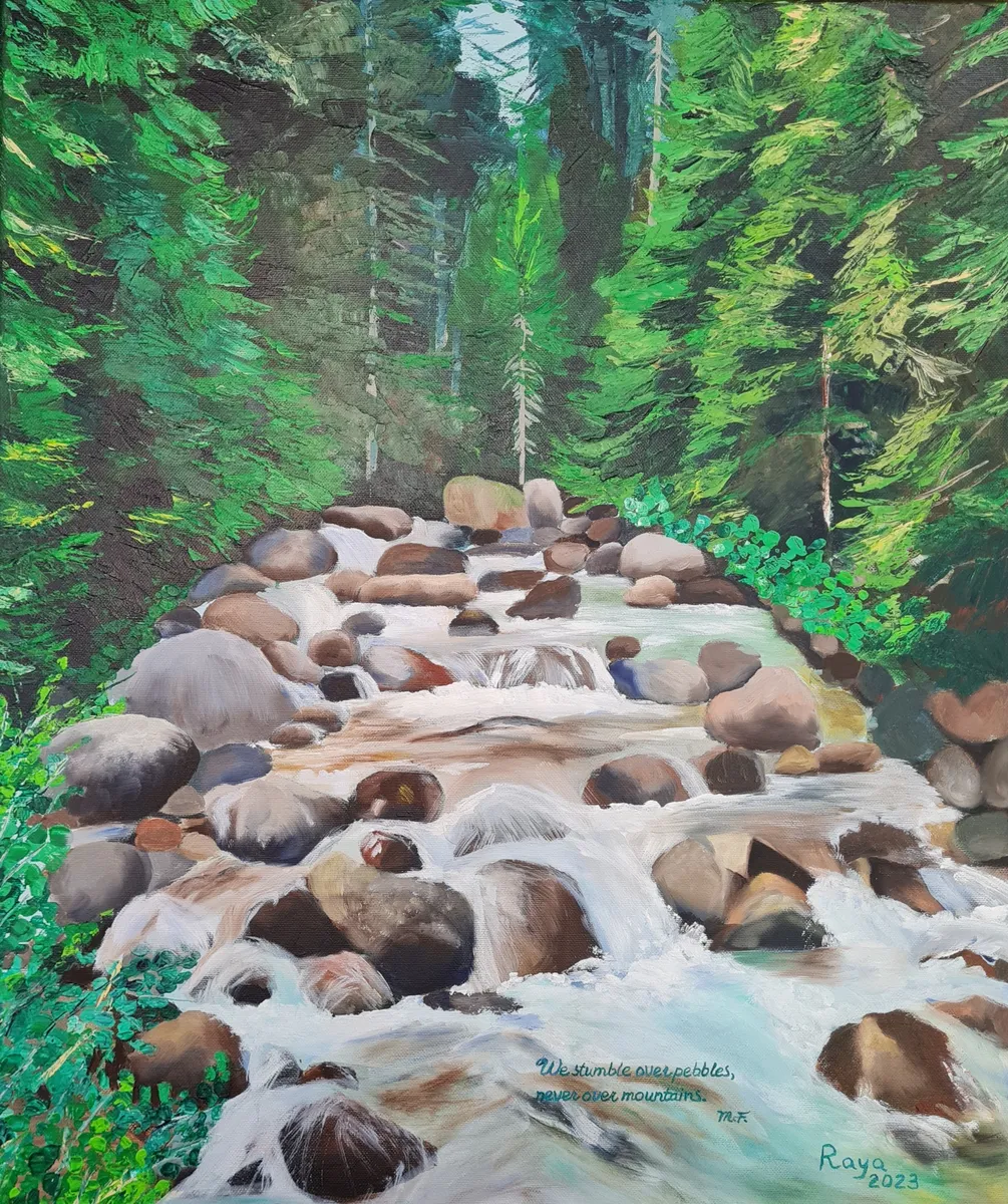 "We stumble over pebbles, never over mountains." MF Proceeds from the sale of this painting will be donated for student scholarships at AUBG.